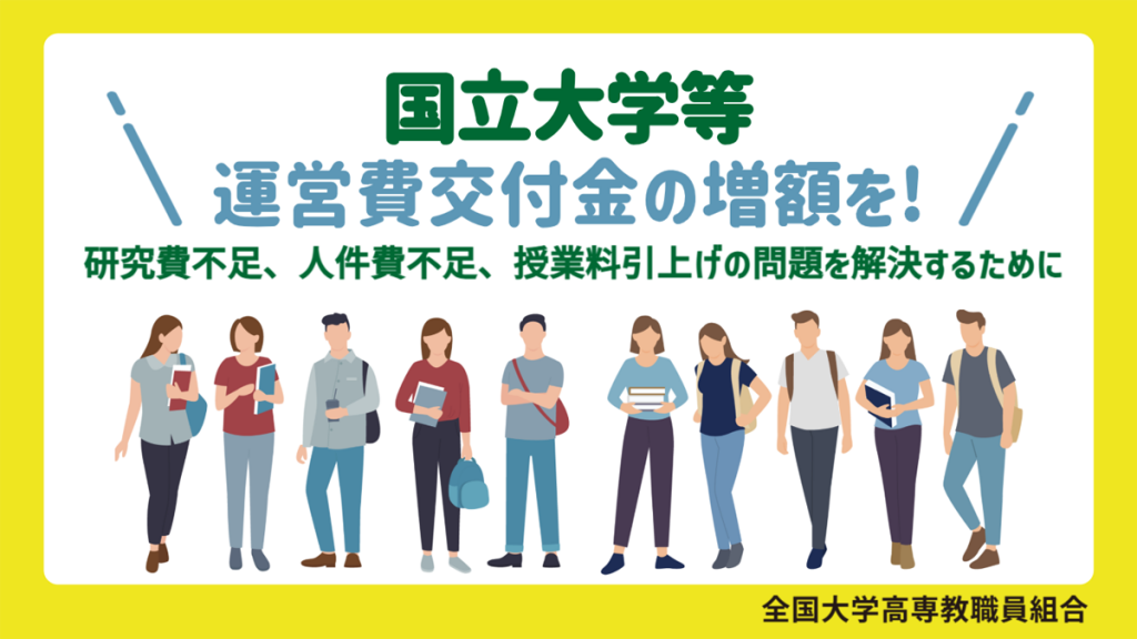 全国大学高専教職員組合は、高等教育機関の教職員が集う労働組合として、労働条件、研究条件とならんで学問の自由を含む基本的人権を擁護することを責務とする。科学者を代表するアカデミーである日本学術会議の自律性を奪うことは、そのまま学問の自由を脅かすことであり、本組合の立場からして容認することはできないと考える。